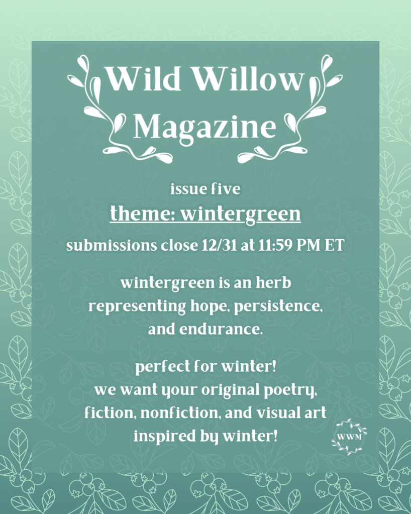Please be sure to familiarize yourself with our Guidelines (below) before submitting to Wild Willow Magazine.